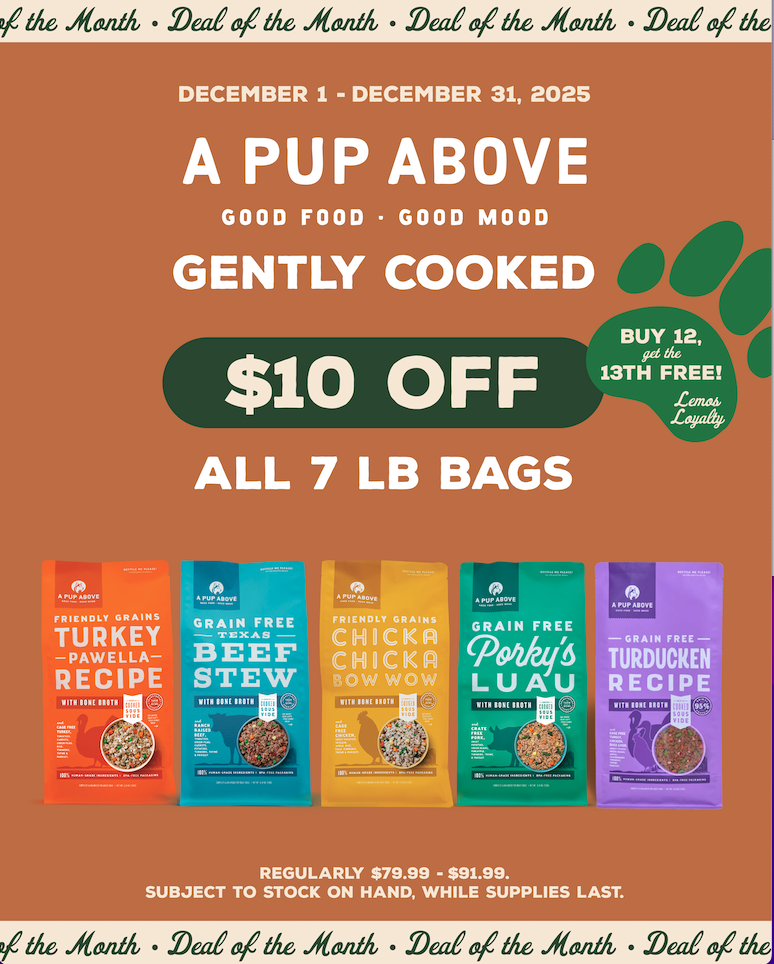 December Deal of the Month: Save $10 on all 7 LB Bags of A Pup Above Gently Cooked Foods!