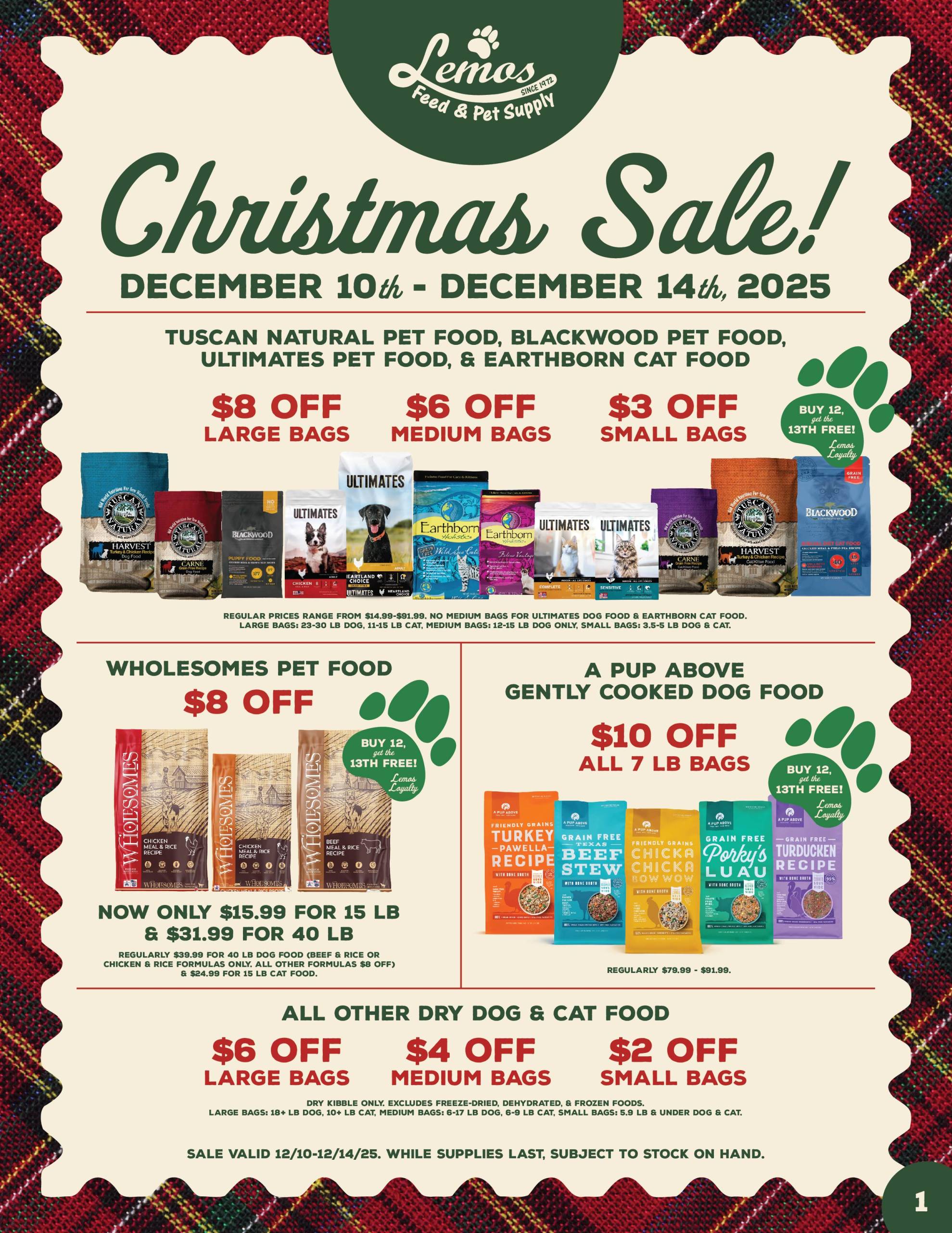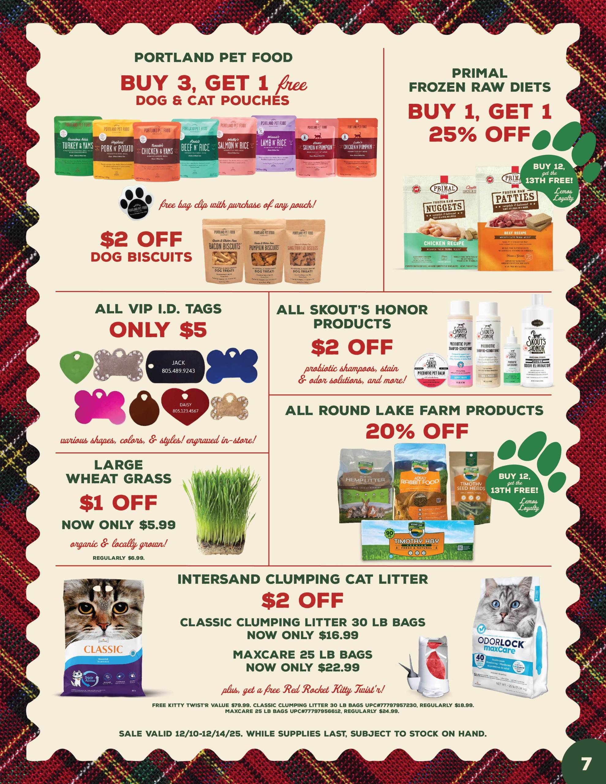 More savings on pet foods, I.D. Tags, wheatgrass, + cat litter during our big Christmas sale!