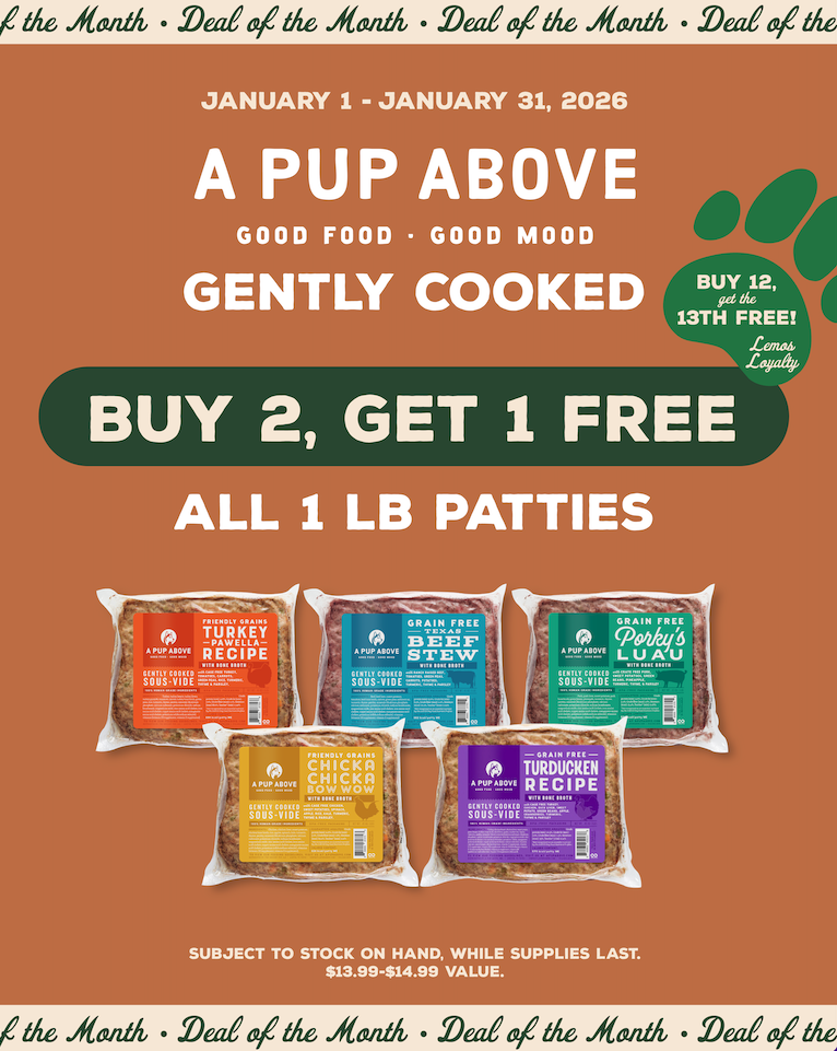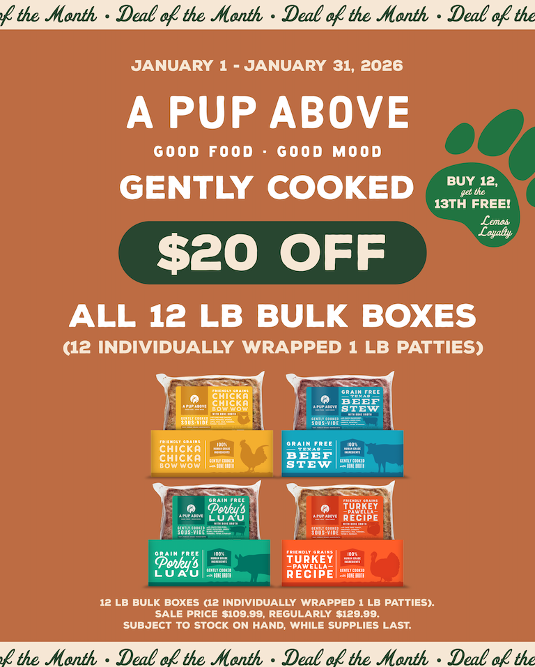 Deal of the Month, January 2026: Take a Whopping $20 off all 12 lb BULK BOXES of A Pup Above!