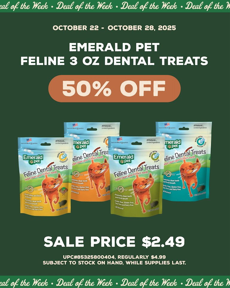 Deal of the Week, October 22nd-28th: Save 50% on Emerald Pet Feline Dental Treats!