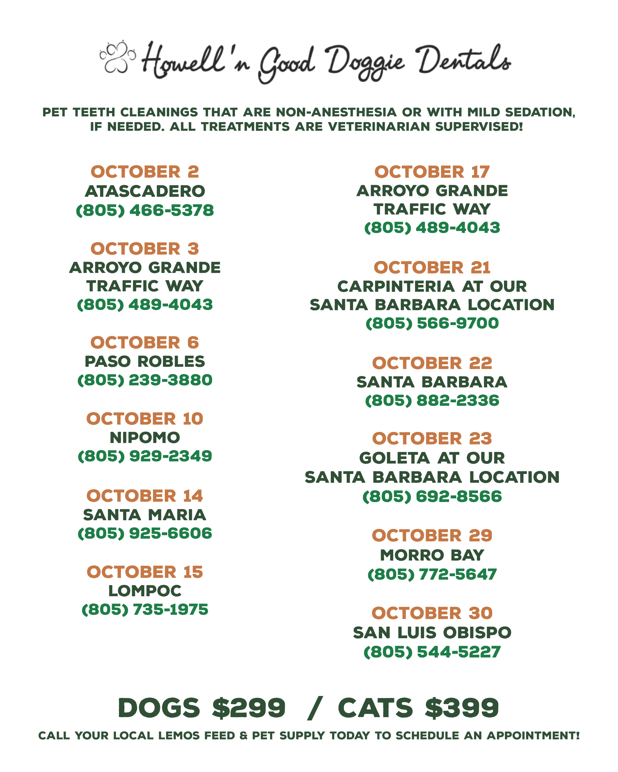 Arroyo Grande (on Traffic Way), Nipomo, Santa Maria, Lompoc, Solvang, Goleta, Santa Barbara, and Carpinteria.